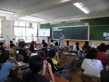 情報モラル市民インストラクターの方に来ていただき、スマートフォンとのつきあい方について動画を見ながら考えました。これから起こりうるゲームやSNSでのトラブルなどについて話し合い、どのように使っていくか考えを深めました。ご家庭にもワークシートを持ち帰っていますので、使い方について話し合ってみていただければと思います。
