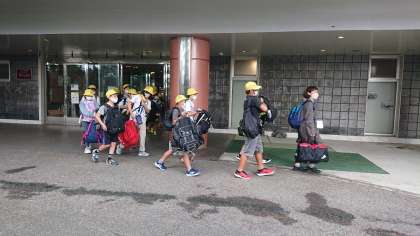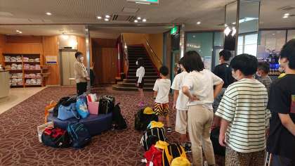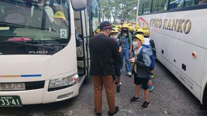 退館式でホテルの方にお礼を言って、バスに乗り込みました。大塚美術館に向けて、出発です。
