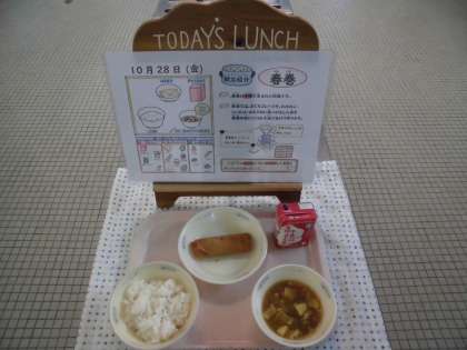 給食室 「10月28日 今日の給食」