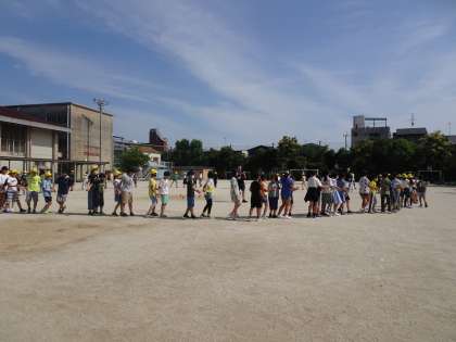 レク係を中心に「キャンプファイヤー」の練習をしました。ダンスは、フォークダンスとソーラン節です。フォークダンスは、レク係の人にレクチャーしてもらいながら、振り付けを覚えました。みんなすぐ覚えていて驚きでした。暑い中でしたが、しっかり水分を取りながらよく頑張りました。