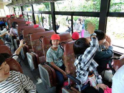 お家の方に手を振って、山の家に出発です。