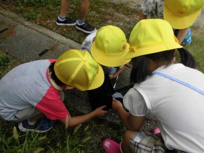 学校の中には、どんな生き物がいるのかを探しに出かけました。