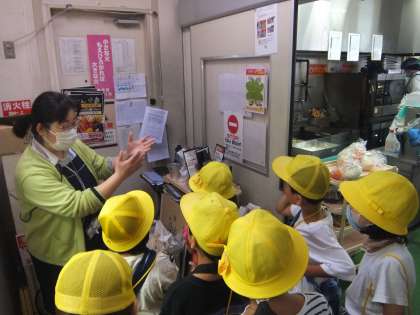 子どもたちが”どうなっているのかな””知りたいな”と思ったことを考えてお店の方にインタビューをしました。あるお店では、普段入ることのできないバックヤードに入らせていただいたり、調理をされている様子を見学させていただいたりしたようです。