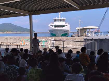 亀浦港に到着です。うず潮観潮船が戻ってきました。みんな大きいのでびっくりです。