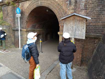 まずは、「ねじりまんぽ」の見学です。「ねじりまんぽ」はねじりのあるトンネルという意味です。