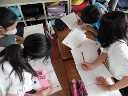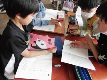 「考えるのって、おもしろい」の学習をしました。詩を音読し、言葉に着目して、感じたことや考えたことを交流しました。人によって感じ方や考え方がちがうことを実感することができ、対話的・協働的な学びをすることができました。