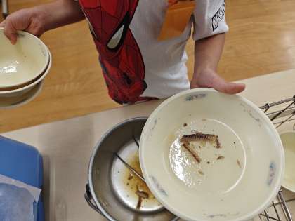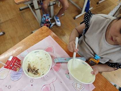 「ごはんとおかずを一緒に食べるとおいしいね!」「こうすれば牛乳を最後まで飲めるんだ!」といろいろな発見がありました。