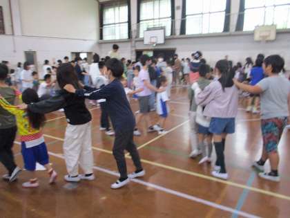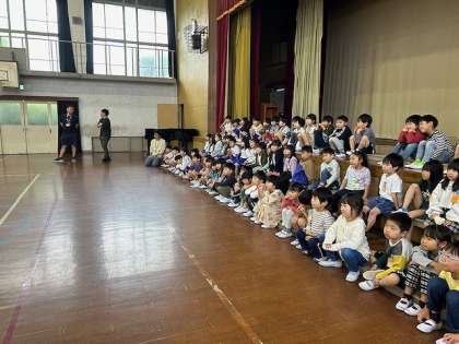 後半は6年生と一緒に入場の確認をしました。6年生に名前を呼ばれると元気いっぱいに返事をしていました。最後は6年生と「じゃんけん列車」で盛り上がりました。6年生と仲良くなることができました。