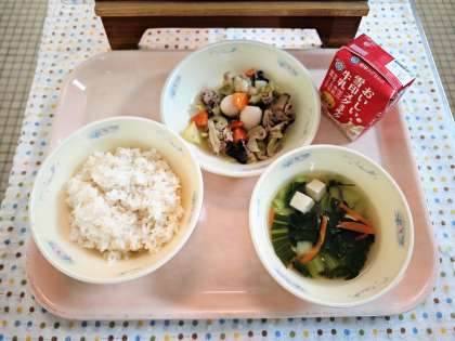 今日は給食では約2か月ぶりとなる「うずら卵」の登場です。給食だよりでもお知らせいたしましたが、事前に「食べるときの6つの約束」についてお話しました。