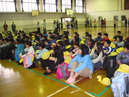4月20日(金),あいにくの雨ですが,体育館には,出発式の司会の子どもの声が元気に響いていました。