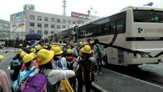 9時52分,広島駅に到着しました。貸切バスに乗り換え,原爆ドームに向かいます。広島平和公園では,平和セレモニーを行います。
