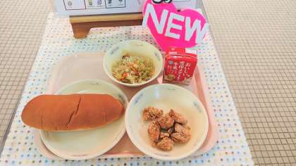 チキンのカレーあげは初めて実施する新献立です。この献立を端的に説明すると「カレー風味のからあげ」なのですが、そうなると毎年冬に実施しているスパイシーチキンにとてもよく似ています。