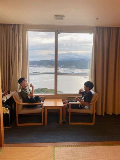 朝食までに部屋の片付けをして身支度を整えます。すでに片付けを終えて、ゆっくりと過ごすグループも…。