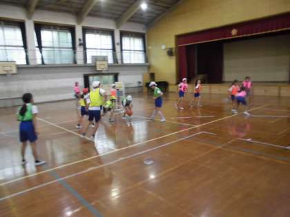 パスやドリブルをつなげてシュートをする楽しさを味わっています。ゴールを入れることは難しく、勝敗がついてしまうスポーツですが、ナイスプレイをするために、チームで工夫しています。