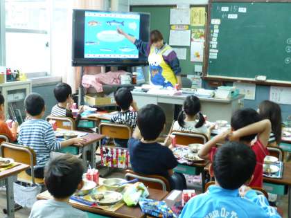 1年生にとって,今日は初めての煮魚料理の日でした。担任の先生と一緒にパソコンや給食カレンダーを使って魚の食べ方を学習し,腹骨を探したり,骨をお皿の端によけたりときれいに食べようと頑張る子ども達の様子が見られました。