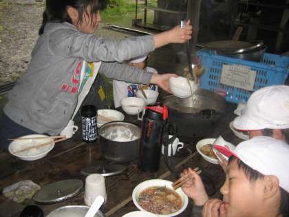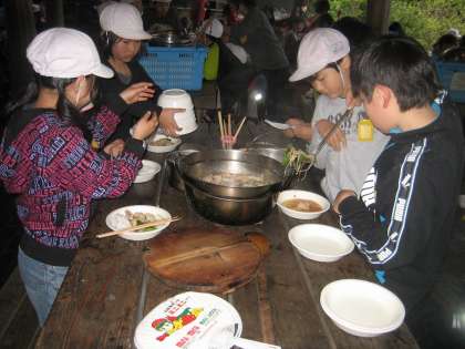 あたりは,もう薄暗くなるのですが,グループで協力しなければ,食事することができないのです。勝手なことをしていると前にすすめないのです。