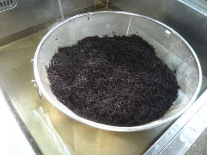 1 ひじきは水洗いして水でもどしたあと,さらによく洗いざるにあげる。