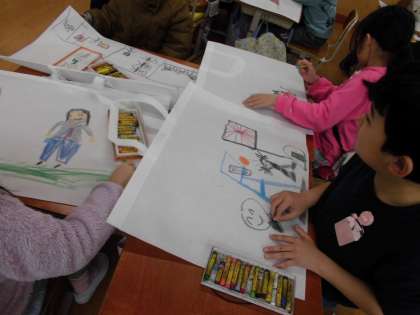 1年間の図画工作科の学習を通して制作した作品を持ち帰るために、購入した作品バッグに絵を描きました。真っ白な作品バッグに、自分の好きなものや心に残っている思い出などを絵で表しました。色や構図にこだわりながら、楽しそうに自分だけの作品バッグに仕上げることができました。木曜日には作品を整理して、それぞれの作品バッグに入れて持ち帰ります。