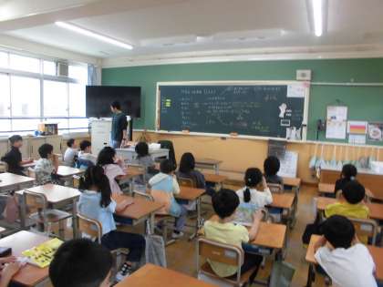 「授業中、緊急地震速報が鳴る」という想定で、一次避難を行いました。一年生も、素早く反応し、自分の身体を守ることができました。校長先生のお話も、しっかりと聞くことができました。
