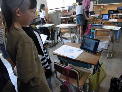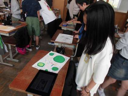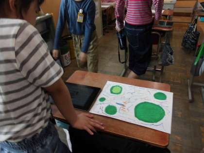 今日は、仕上がった作品を鑑賞し、お互いの良さを見付け、交流しました。友だちがどんな音を表現したのか、想像しながら鑑賞したり、自分と表現の仕方を比べたりして、豊かな時間となりました。