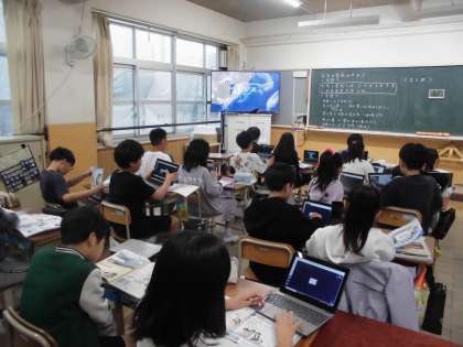 雲の観察をし、雲が西から東に動いていることに気づいた子ども達。「日本では、世界では、どのような雲の動きになっているのか」「雲の動きや天気の変化にはどのようなきまりがあるか」について学習しました。いろいろな気象情報に目を向け、考えられるようになりました。