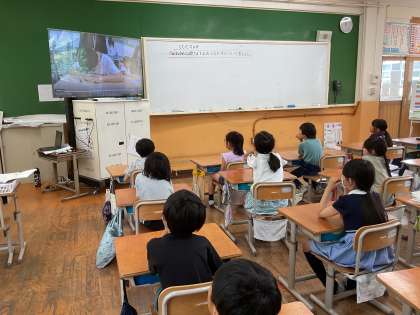 ひまわり学級について知っていることを話したり、紹介動画を見たりしました。ひまわり学級の紹介動画で、自己紹介や普段の生活の様子を見て、新しい発見などについても交流しました。