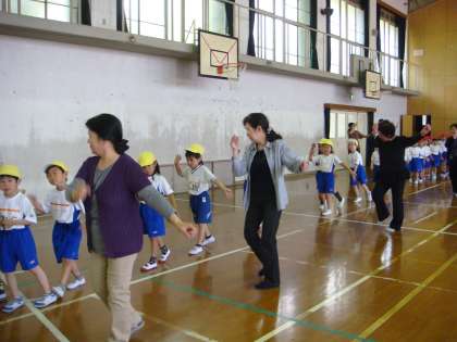 西京極小学校の1年生は,毎年,女性会の方々に振付を教えていただきます。今年も5月21日(月)に教えていただき,今では,全校児童で踊ることができます。
