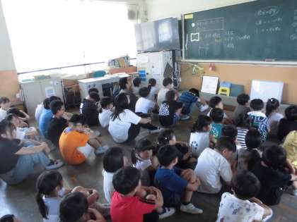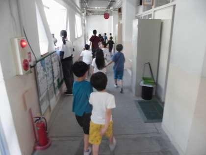 大雨により、河川が氾濫し、垂直避難をする必要があるという想定で実施しました。北校舎と1階にいる児童は移動をし、受け入れる教室は速やかに準備をすることができました。大雨や洪水、河川での安全について、ご家庭でもお話しください。