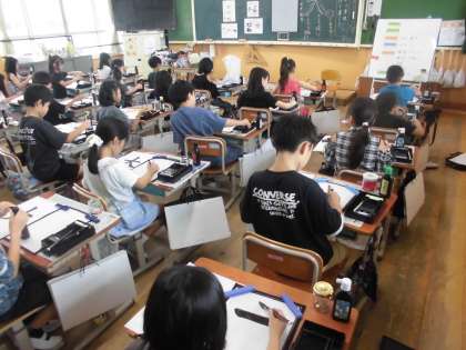 「はらい」の筆遣いに気をつけて書きました。初めての左はらいや右はらいはとても難しかったのですが、正しい書き方を意識して、美しい字を書きたいという思いをもって取り組みました。