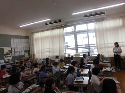 中間休みに強い地震が起こったという想定で実施しました。教室外で、大人がいない状態でも一次避難をし、安全確認ができるまで落ち着いて待つという訓練でした。また、各教室でふり返りをすることで、今後につなげられるようにしています。自分で自分の身を守ることができるよう、くり返し訓練をしていきます。