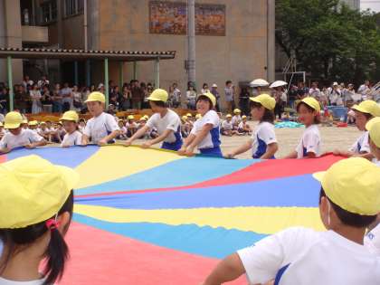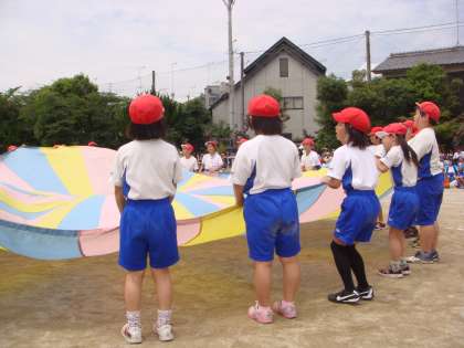 ひまわり学級と3年生の合同種目です。ひまわり学級の子どもたちも3年生の子どもたちもとっても楽しそうです。