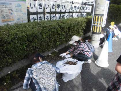 全校児童が集まり、学校の清掃活動を行いました。暑い中でしたが、みんなよくがんばっていました。白寿会の皆様にもご協力いただき、地域の方々とふれ合うよい機会にもなりました。本当に、ありがとうございました。