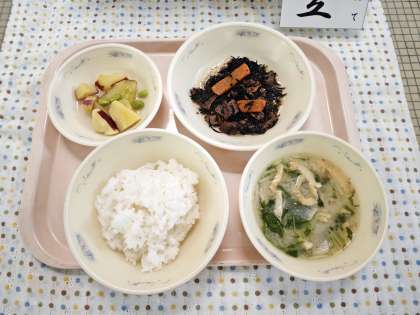 今日は「和食の良さ」や「だしのおいしさ」を味わう和(なごみ)献立の日です。そのため、牛乳はありません。