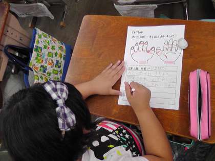 6月のともだちの日の学習として,身の回り,特に毎日何回も行う手洗いについて改めて考えてみました。