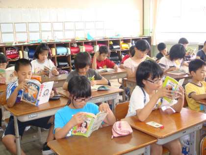 今週は,静かな音楽をBGMして読書に集中しています。担任ももちろんいっしょに読んでいます。