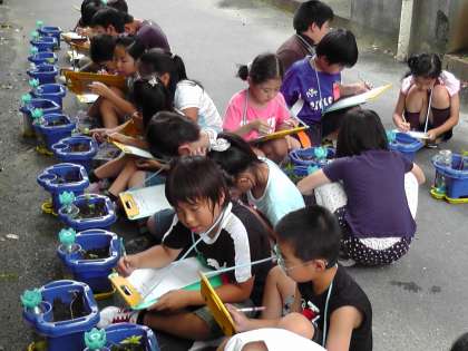 葉やくきの色,葉の形,さわった感じなど,自分の目や手をよく使って観察しています。