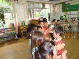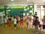 そのあとダンス「ハッピーフレンズ」をみんなで楽しみました。お誕生月ごとに輪の中に入り,歌にあわせてみんなとハイタッチ。