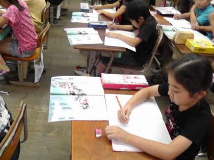 子ども達は挿絵を見て,場面を想像しながら,お話を聞きます。