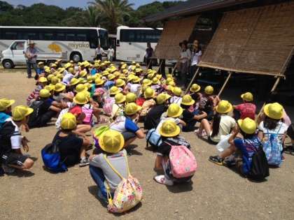 みさきの家に向けてのバスは,予定通りに進み12時に到着しました。たいへん暑そうですね。