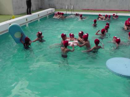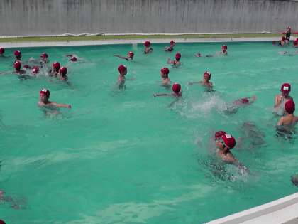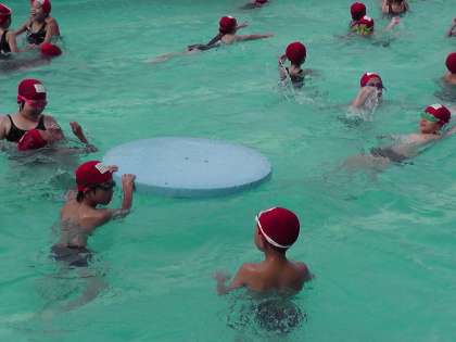 今日は,ふしうきやけのびをしたり,ビートバンを使って25m泳いだり,クロールの手を練習したりしました。