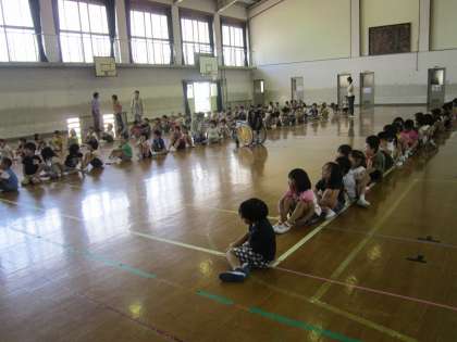 体育館に集まって質問コーナーやうた遊びなど楽しい時間が過ごせました。