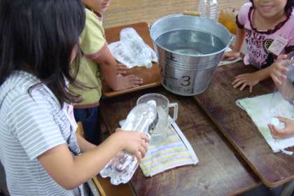 1リットルマスにどのくらいはいるのかなとみんな真剣です。