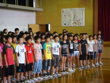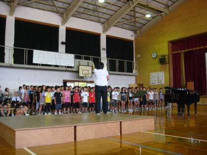 合唱は,一人ではできません。一人ひとりの歌声が集まることででき上がっていきます。今日の全校音楽集会では,120名の歌声が集まり,重なり合い,響きました。