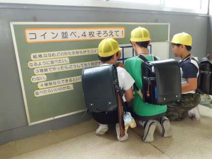 「まず,ここに1円玉を並べるやろ。次は10円玉,それで50円玉,ここに100円玉を並べて・・・。」