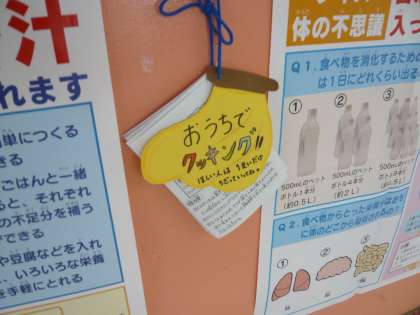 また,「おうちでクッキング」というところには,毎月の献立の中から人気がある給食メニューのレシピをつけています。楽しみにしている子ども達は,来月は「肉じゃがのレシピね。」とリクエストをしてくれています。