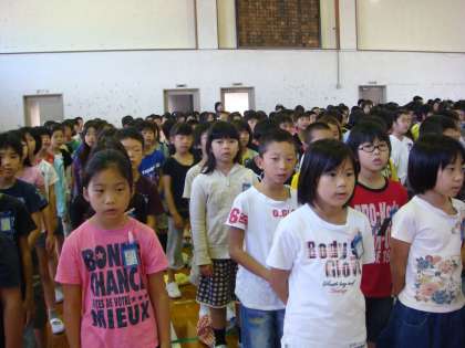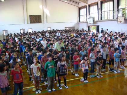 また,本校は,このような式や,朝会のときには,全校で歌います。今日は,第1回の全校音楽集会で練習をしました『歌よ ありがとう』を歌いました。本当にいい歌声でした。子どもたちの歌声が,しっとりと体育館に響きました。歌声だけでなく,4月からがんばってきたことで,いろんな力をつけてきたことでしょう。子どもたちの凛とした姿がたいへんまぶしく感じられました。そう思えることが,なによりうれしいです。