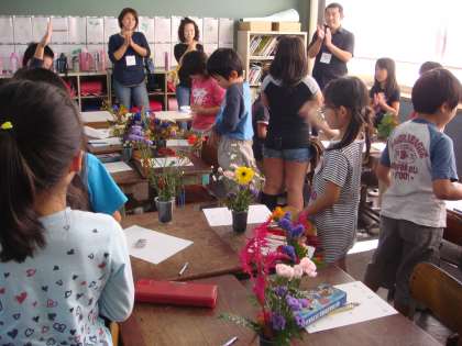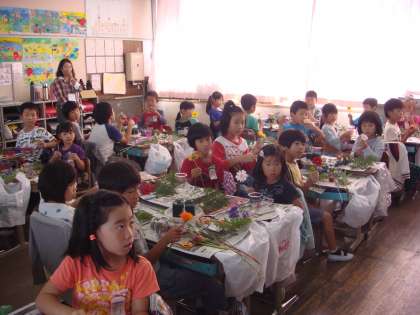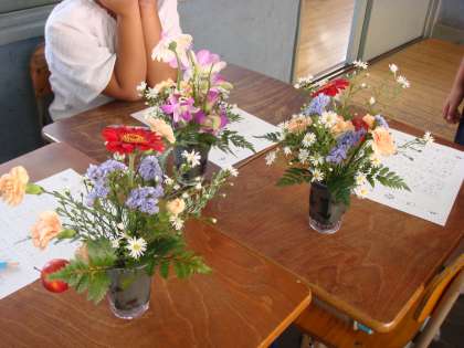 お花の名前,お花の切り方,そして,生け方をていねいに教えていただいていました。そして,アレンジ花が,完成するころ,子どもたちの心は,どのように変化をしていたのでしょか。