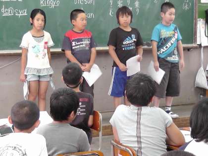 クラスの友達に伝わるように,声の大きさや言い方を考えて発表していました。