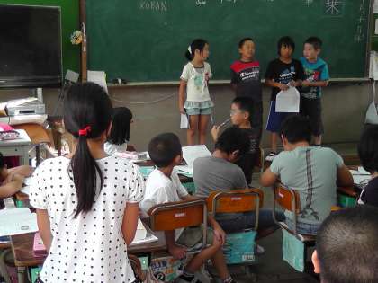 各グループで練習してきた内容をみんなの前で発表しています。