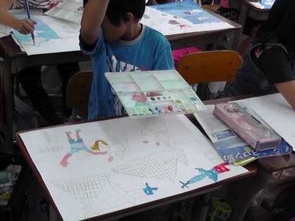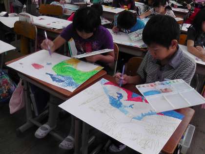 細かい所などを塗ることは難しいですが,みんな真剣に頑張っています。